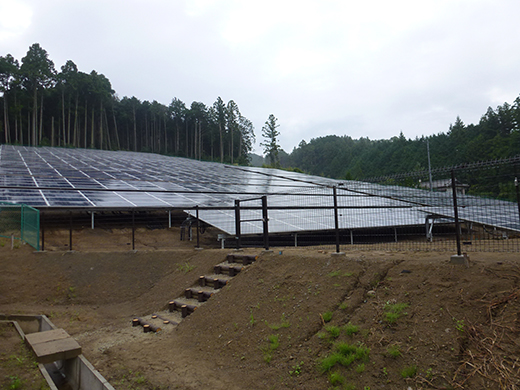 当社は掛川市遊家の本社敷地の斜面5,526m2を活かし、太陽光発電を手掛けています。